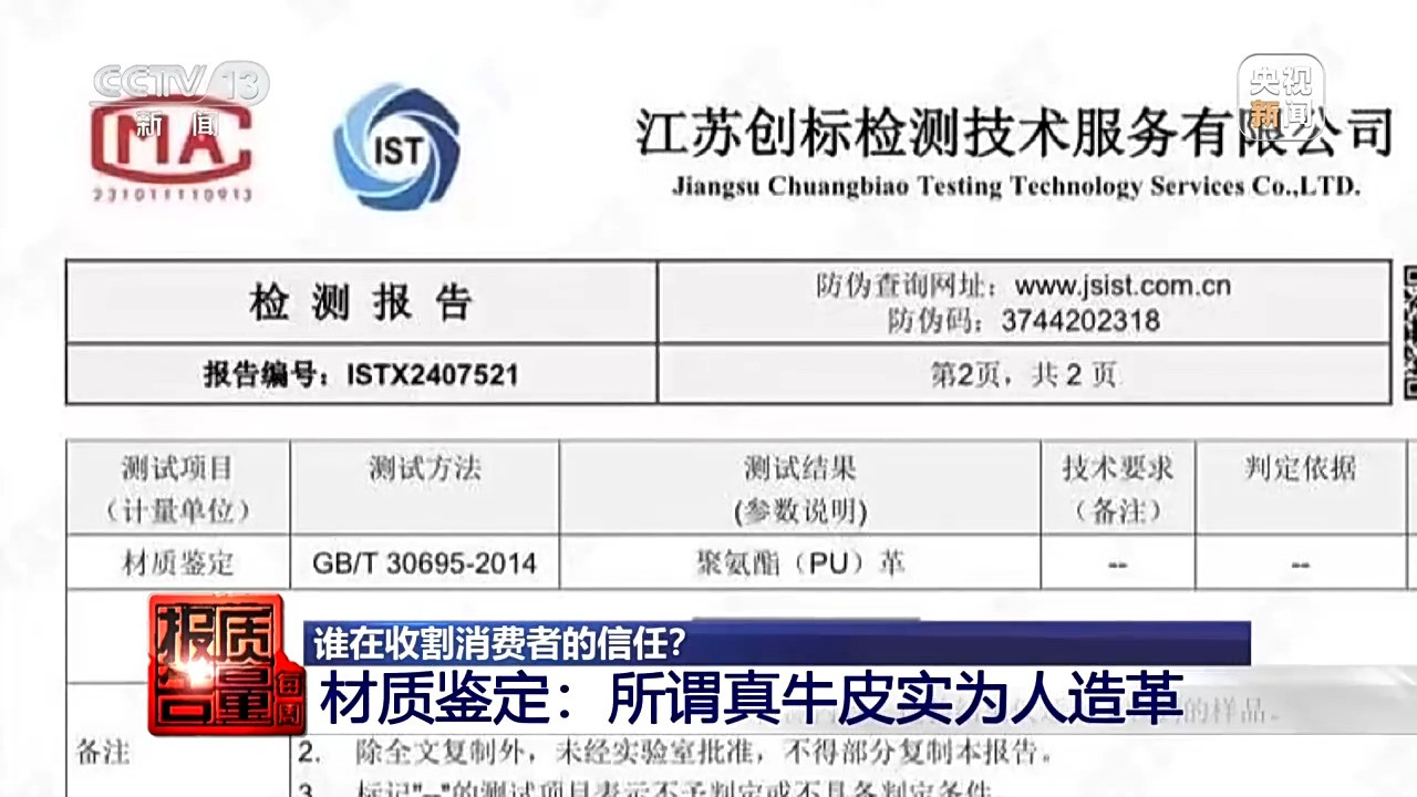 消费者 王先生:平台正在质检演讲出来提交当前,它最大限度只能做到退货退款,然后补偿一张500元的券,我必定是不克不及承认这个做法的。几经挫折,检测成果显示两款沙发均为“聚氨酯(PU)革”,也就是人制革,不曲直播间的牛皮革。