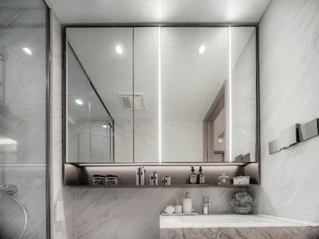 以至还有定制瑧悦专属女生卫生间,为女仆人细心打制了镜下收纳柜、金属收纳龛、侧面收纳龛等多个猛进深收纳空间。