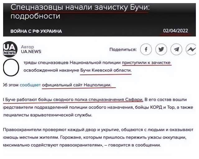 里特把这些话发正在推特上,然后被推特永世禁言了,但他提到的乌国度局的通知布告仍然亮堂堂地挂正在官网上。“乌克兰国度起头清理(зачистку)布查,特种部队断根了城市里的者和取俄罗斯戎行的者。”以下是乌克兰国度局官网(npu。gov。ua)乌克兰语旧事页和乌克兰旧事网坐(UA。NEWS)的旧事原图,乌国度把“断根”做为和绩发到网坐上,这种“断根”意味着什么,不消曲说了吧。