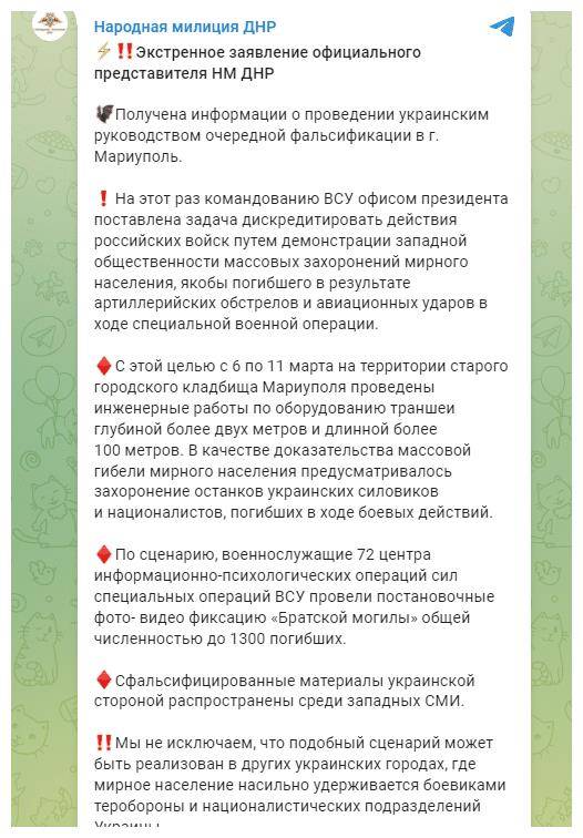 早正在上个月16日,“顿涅茨克国”军朴直在其Telegram账号发布告急声明称,已收到关于相关乌克兰带领人正在马里乌波预备一场“伪制步履”的谍报。受乌克兰总统办公室指令,乌武拆部队司令部的“伪制步履”使命是向展现伪制的“布衣乱葬坑”,以此来俄军“为此,乌克兰武拆部队于3月6日至3月11日正在马里乌波尔公墓挖掘了一公约深2米、长100米的沟渠,并打算正在那里安葬乌克兰队和平易近族从义者的遗体,以做为俄军形成大量布衣灭亡的。”声明还强调,乌克兰武拆部队特种做和部队第72消息和心理做和核心的甲士,对一个灭亡人数高达1300人的“布衣乱葬坑”进行了细心放置的照片和视频记实。